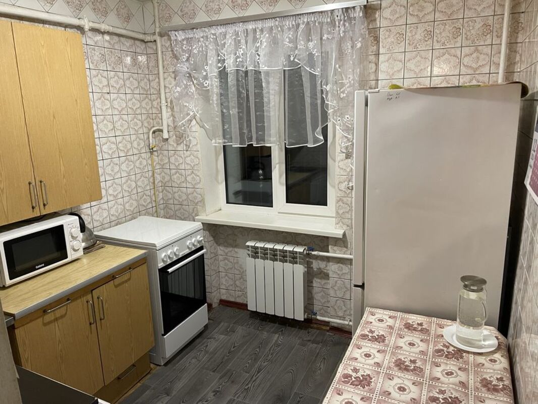 вул. Білецького 5А. 1-й поверх/5-ти поверхового будинку, хрущовка, на вікнах решітки. Площа: 47/20/6 кв.м. Кімнати роздільні. Косметичний ремонт, меблі, побутова техніка: пральна машина, холодильник, телевізор, нвч-піч, бойлер. Санвузол сумісний. Балкона немає. |