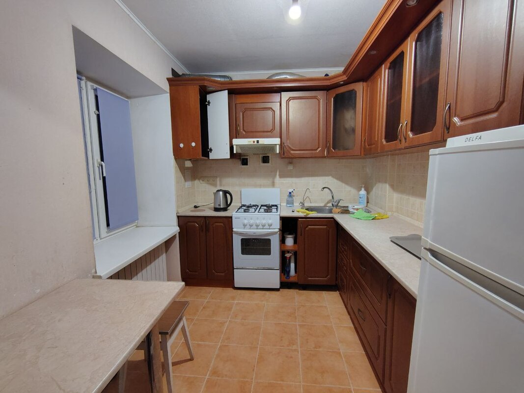 вул. Добрий шлях 5. 3-й поверх/5-ти поверхового будинку, хрущівка. Площа: 32/17/8 кв.м. Косметичний ремонт, меблі, побутова техніка: пральна машина, холодильник. Санвузол сумісний. Балкон засклений. ст.м. Голосіївська – 5 хвилин пішки. | ||||||||||||||||||